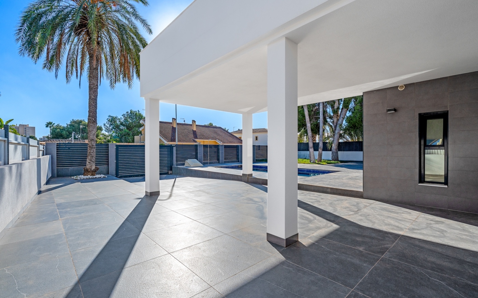 Villa indépendante à Dehesa de Campoamor (Orihuela Costa) avec un terrain de 700 m² et une maison de 235 m², comprenant un solarium. Orientée sud/est et située à seulement 700 mètres des magnifiques plages de Campoamor. La propriété dispose de 4 chambres, 3 salles de bains, un séjour-salle à manger spacieux, une cuisine avec îlot ouvert, un grand solarium avec accès à différents espaces extérieurs et une installation prévue pour une cuisine d’été ou un barbecue. La maison est équipée de la climatisation dans toutes les pièces, du chauffage central, de volets électriques, de fenêtres et portes en aluminium, d’une piscine privée, d’un terrain parfaitement entretenu et de sols en marbre – une qualité supérieure dans toute la propriété.