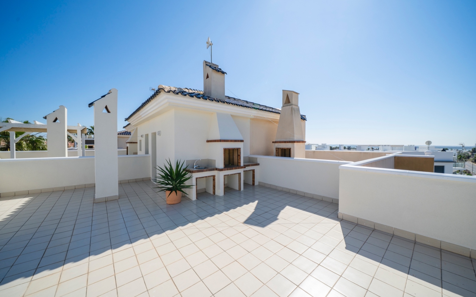 Charmant appartement situé au dernier étage dans la résidence prisée Albamar. Il offre une surface construite de 79,27 m² comprenant deux chambres doubles avec placards et une salle de bain familiale avec douche. Il dispose également d’un salon-salle à manger lumineux avec cuisine ouverte. Depuis le salon, accès direct à un grand balcon orienté ouest.Situé au premier étage avec accès par escalier, il est vendu entièrement meublé.Depuis le balcon, un escalier extérieur mène à un grand solarium privé avec débarras et barbecue en dur, offrant une vue sur les salines de Torrevieja et La Mata.Comprend une place de parking privée dans un garage souterrain. Résidence avec piscines, piscine enfants et jardins. Proche des commodités à Doña Pepa.