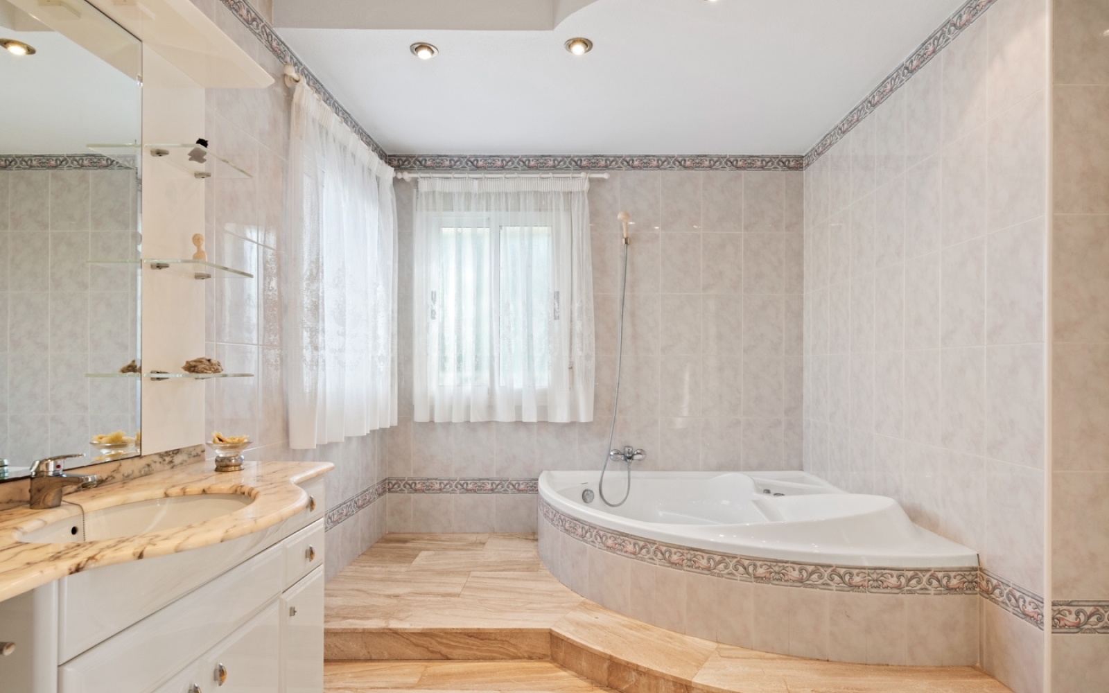 L'extérieur de la propriété est l'un de ses atouts majeurs : il comprend une cuisine d'été entièrement équipée et fermée, utilisable toute l'année, ainsi qu'une grande piscine, idéale pour les réunions de famille et entre amis. Le terrain inclut également un garage fermé, un parking supplémentaire et des jardins paysagers qui entourent entièrement la maison.