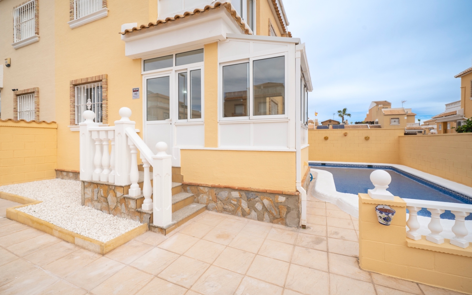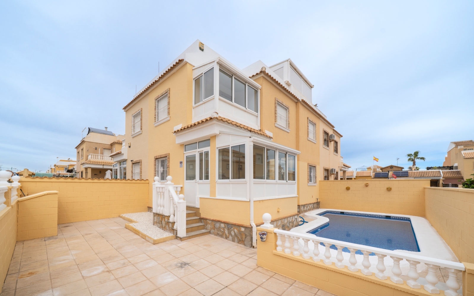 Propriété répartie sur deux niveaux plus solarium, située sur une parcelle privée avec jardin et piscine privée, au sein d’une résidence disposant de deux piscines communautaires à Ciudad Quesada (Rojales).