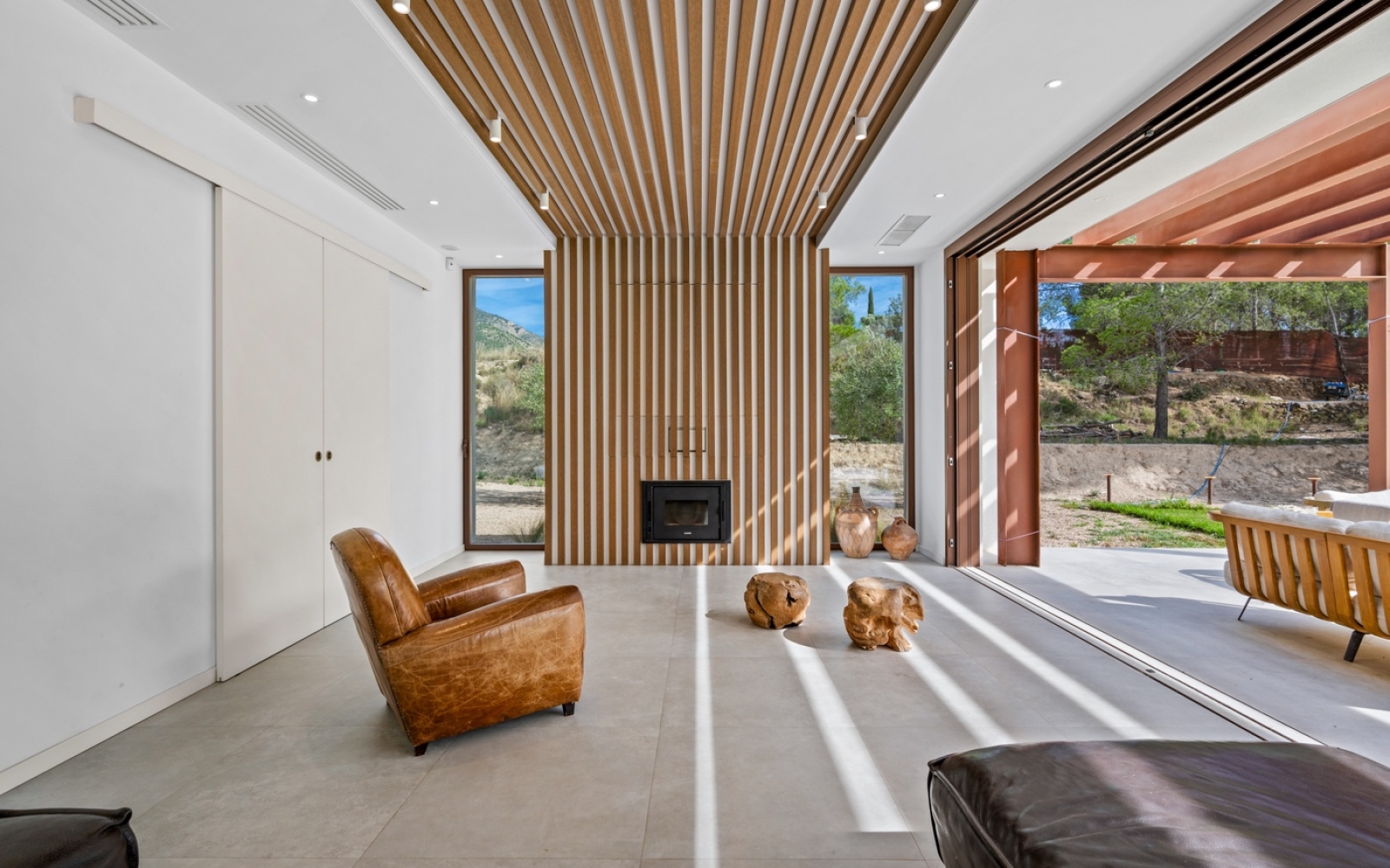 Cette villa passive-house à Finestrat en fait partie. Ce n’est pas seulement de l’architecture moderne – c’est une façon de vivre : durable, avant-gardiste et paisible.230 m² construits selon les normes biopassives les plus exigeantes, pensés pour capter chaque rayon de soleil, chaque brise, chaque goutte de pluie… Le tout en harmonie avec les 10 000 m² de nature, d’oliviers et d’arbres fruitiers qui l’entourent. Ici, l’extérieur ne commence pas à la porte – il commence bien avant.