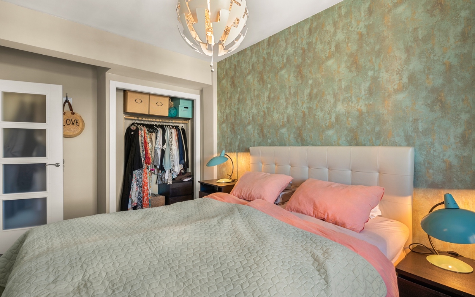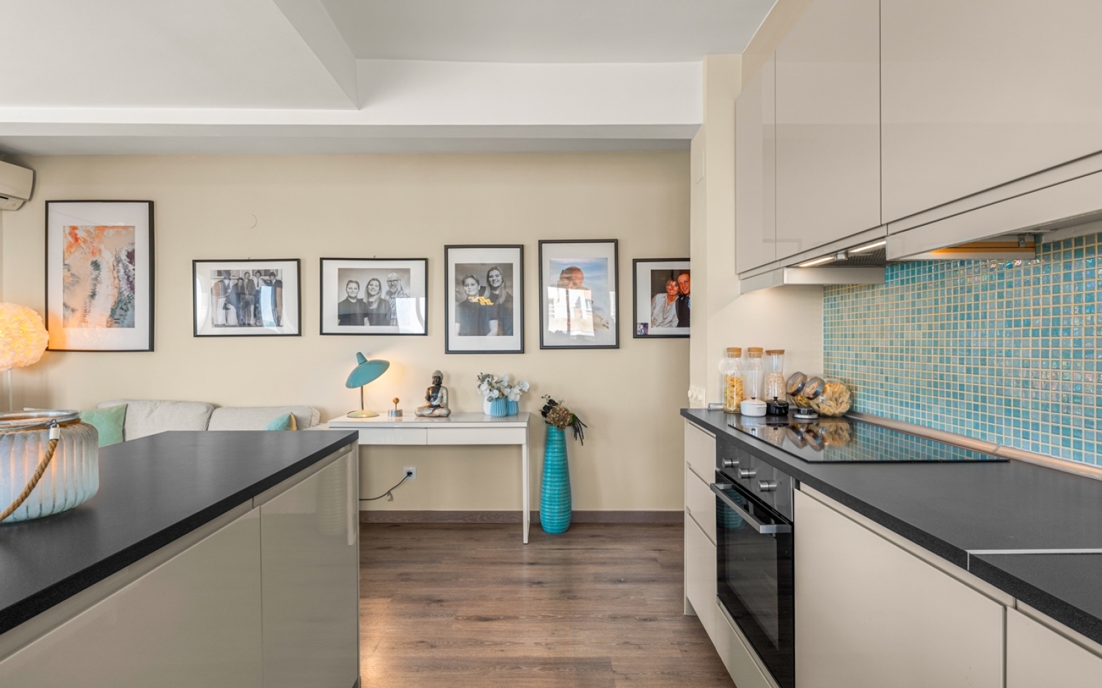 Appartement lumineux, moderne, prêt à emménager. Salon avec cuisine ouverte et accès balcon. Deux chambres, salle de bain élégante.