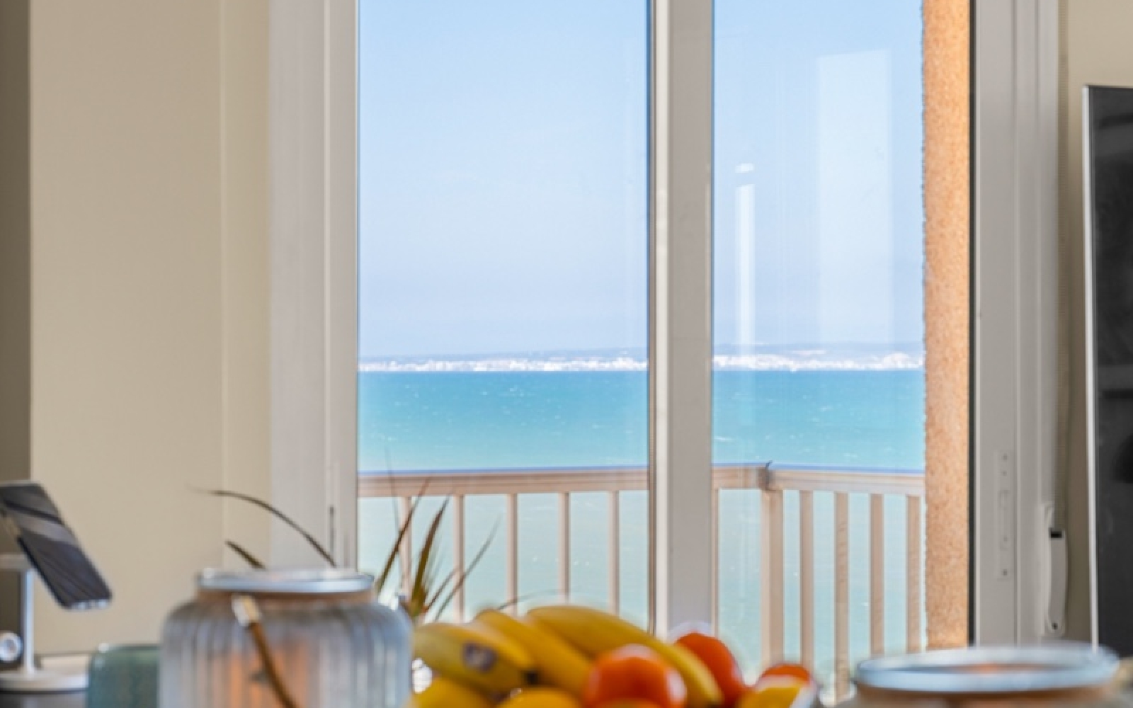 Première ligne face à la mer avec vue dégagéeBalcon avec vue panoramiqueEntièrement rénové, moderne et impeccableVendu meublé et prêt à emménagerCuisine équipée récenteChambres spacieuses avec rangementsRésidence bien entretenue avec terrasse commune