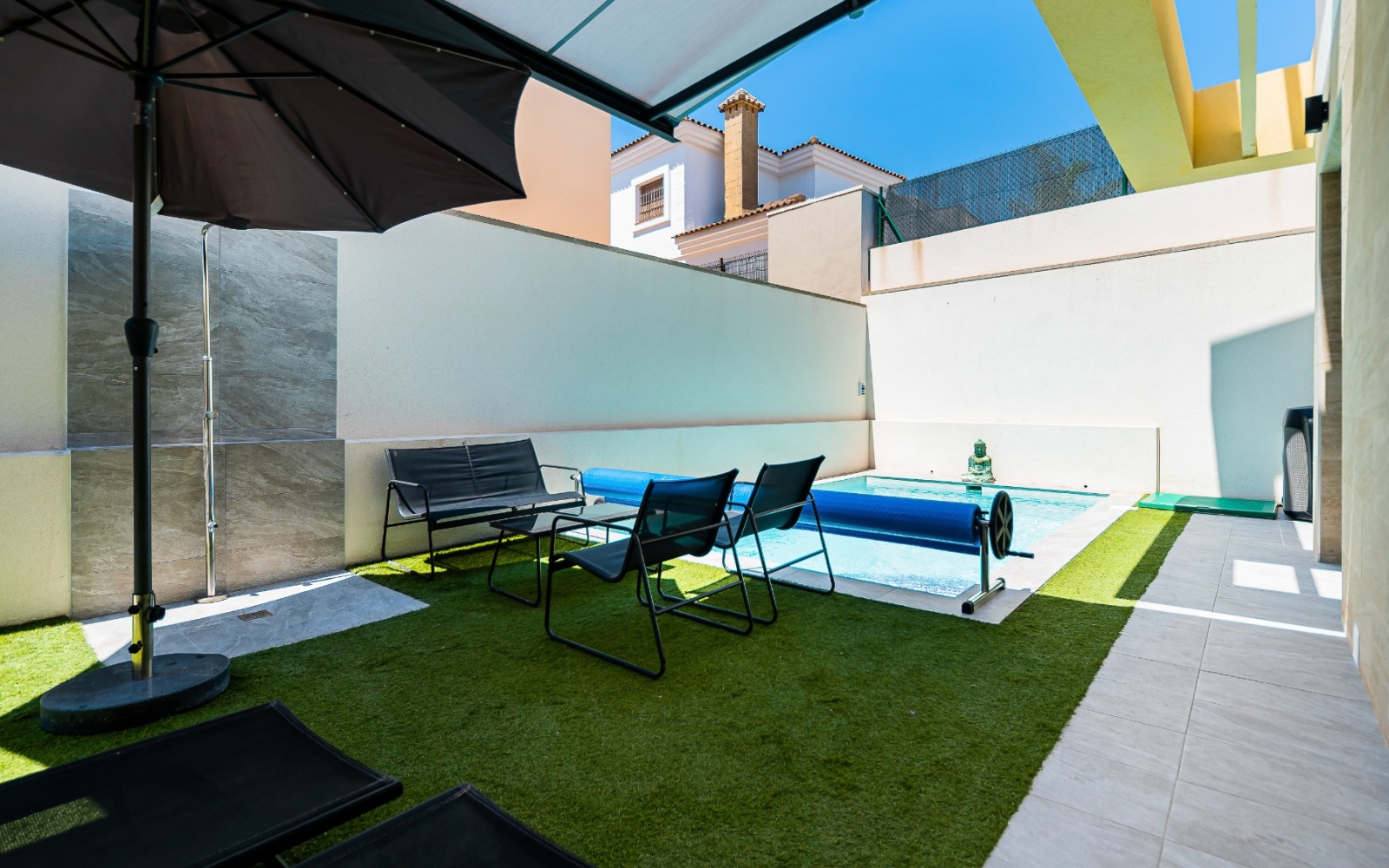Une piscine privée chauffée à l'eau salée, idéale en toute saison.