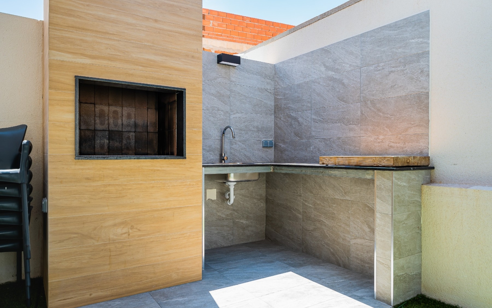 Une terrasse avec barbecue brésilien intégré, parfaite pour des grillades et des moments inoubliables en famille ou entre amis.