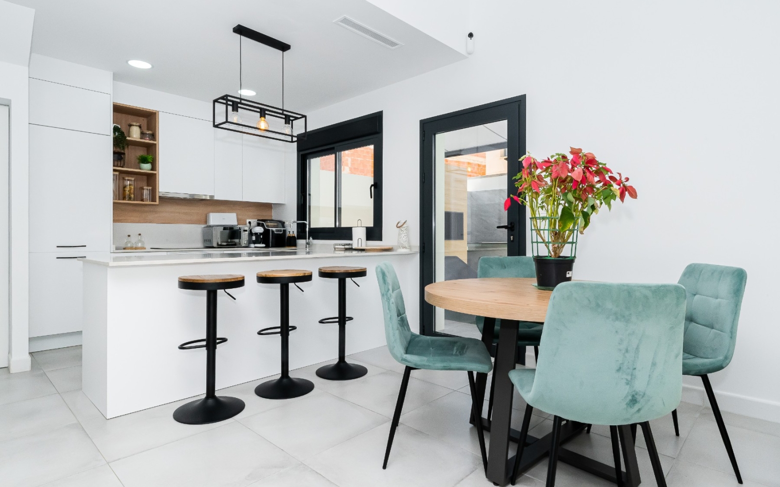 Le cœur de la maison est son salon lumineux avec un haut plafond, créant une impressionnante sensation d'espace. De grandes fenêtres laissent entrer une abondante lumière naturelle, reliant harmonieusement l'intérieur et l'extérieur. La cuisine moderne et entièrement équipée offre à la fois fonctionnalité et style, parfaite pour un usage quotidien et pour recevoir des invités.