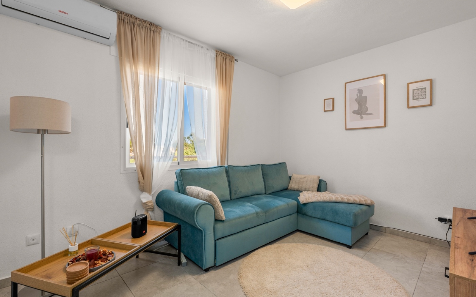 Il comprend trois chambres, deux salles de bains et un vaste séjour/salle à manger créant une ambiance chaleureuse et conviviale. La cuisine indépendante, ouverte sur un patio intérieur, offre un espace supplémentaire et une grande praticité.