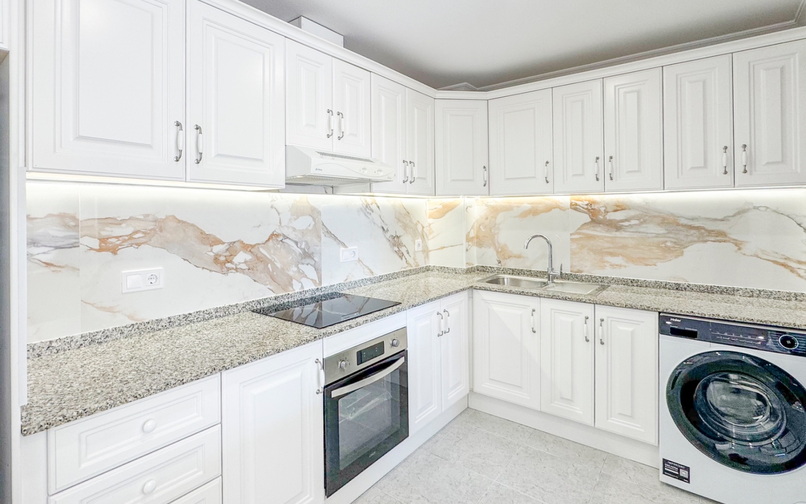 Il dispose de 83 m² construits, répartis en 2 chambres et 2 salles de bains, dont une avec douche à l’italienne. L’appartement a été rénové et présente des finitions comme des carreaux en grès cérame grand format et des éléments en pierre naturelle. Il est vendu meublé avec une cuisine équipée, incluant plaque à induction et électroménagers.