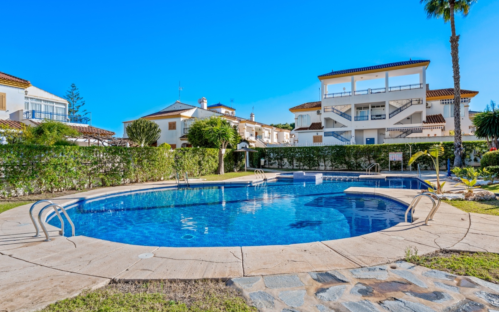 Ce charmant appartement exposé ouest est situé dans un quartier résidentiel calme et bien établi de Mil Palmeras, à seulement 800 mètres de la mer et à distance de marche de l’une des plages les plus populaires de la Costa Blanca.