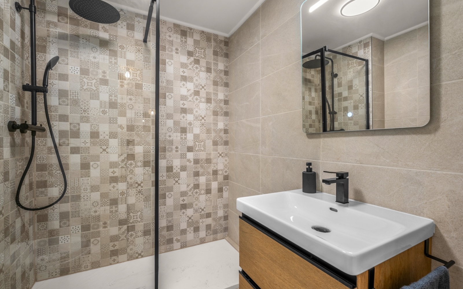 Il comprend trois chambres spacieuses, dont une suite parentale, et une salle de bain supplémentaire, toutes deux équipées de douches.