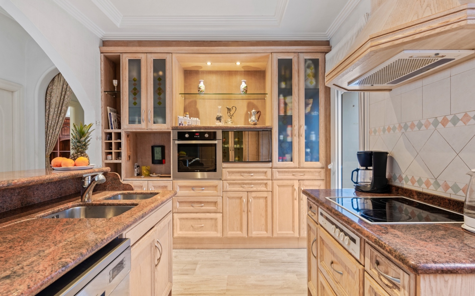 L'extérieur de la propriété est l'un de ses atouts majeurs : il comprend une cuisine d'été entièrement équipée et fermée, utilisable toute l'année, ainsi qu'une grande piscine, idéale pour les réunions de famille et entre amis. Le terrain inclut également un garage fermé, un parking supplémentaire et des jardins paysagers qui entourent entièrement la maison.