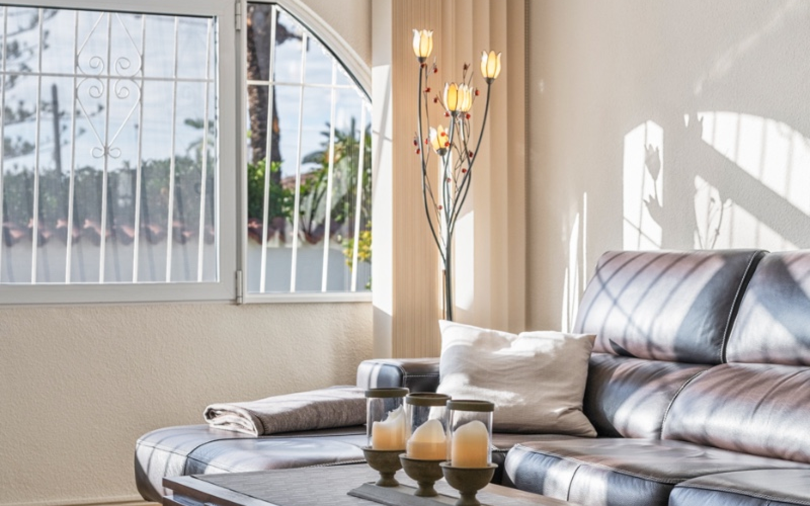 La maison se compose de trois chambres spacieuses et de deux salles de bains, la suite parentale bénéficiant d'une salle de bains privative. La villa dispose d'un espace de vie/salle à manger lumineux et spacieux, baigné de lumière naturelle, créant une atmosphère chaleureuse et accueillante.