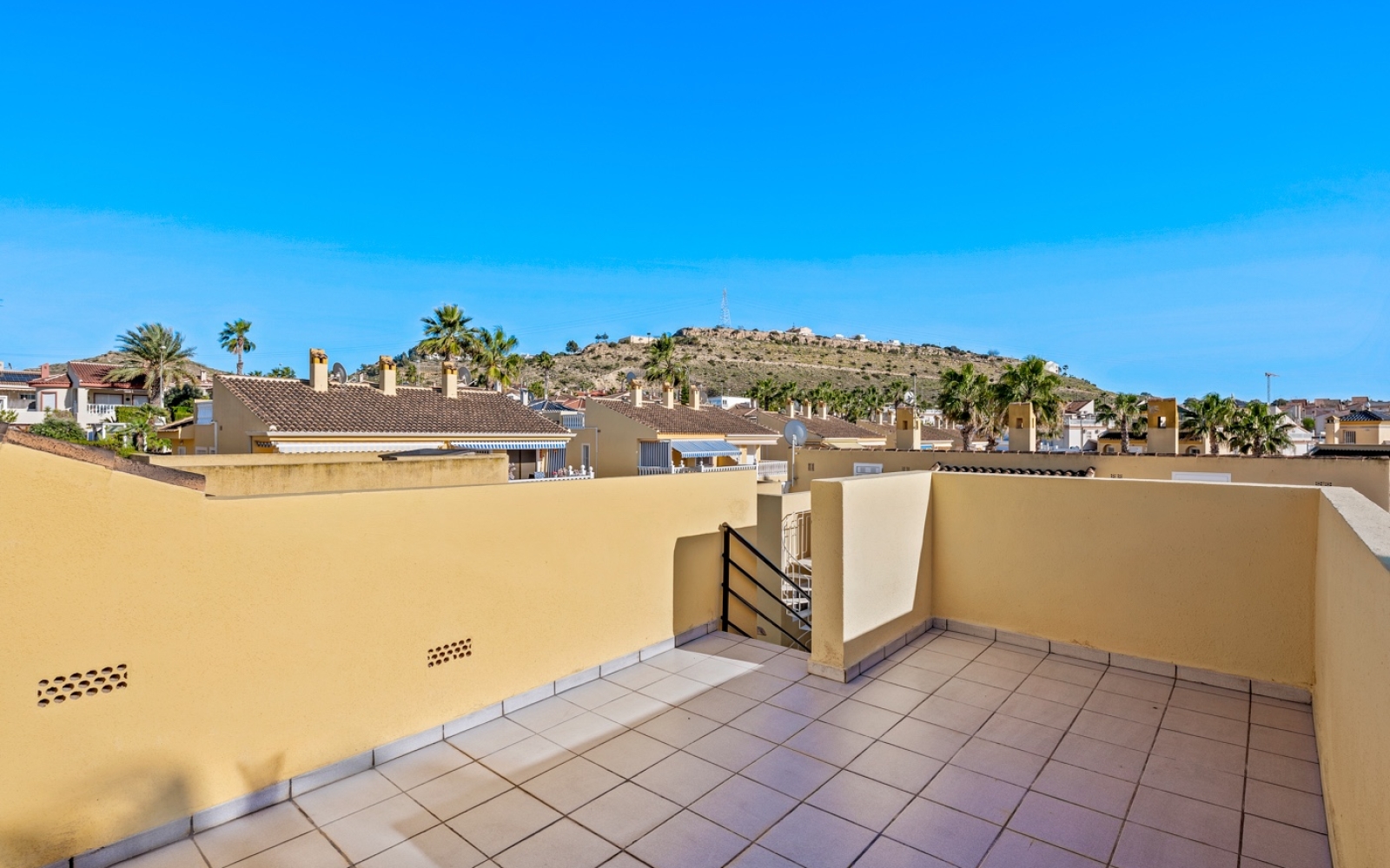 À l’étage supérieur se trouve un vaste solarium sur le toit, idéal pour profiter du soleil toute l’année, ainsi qu’un espace de rangement pratique.