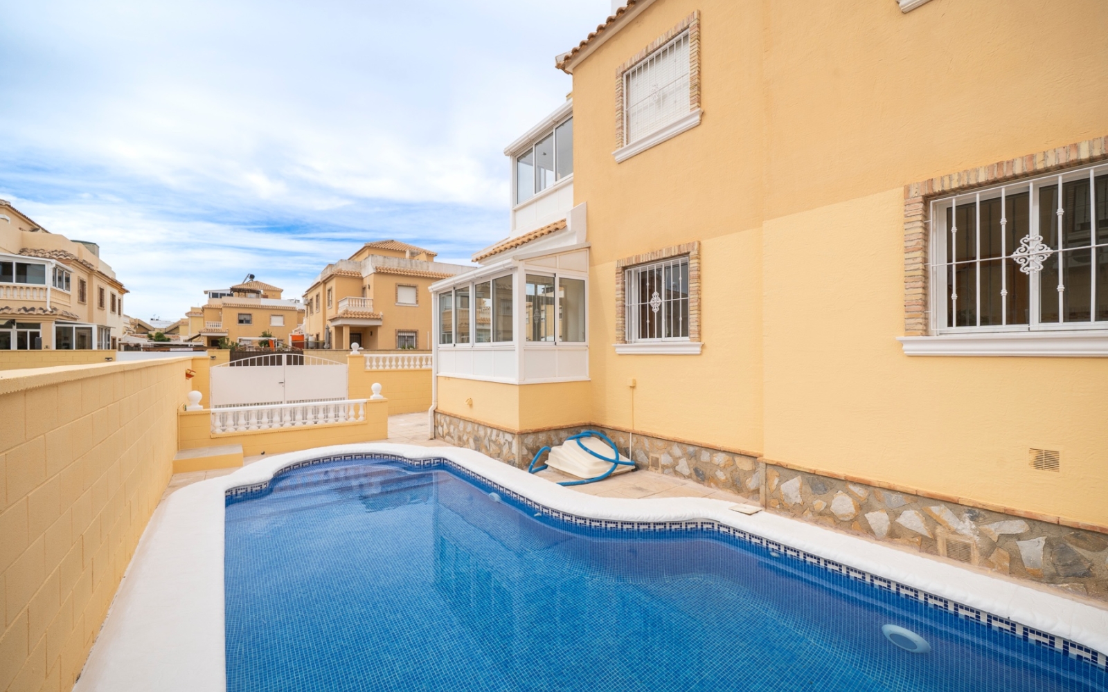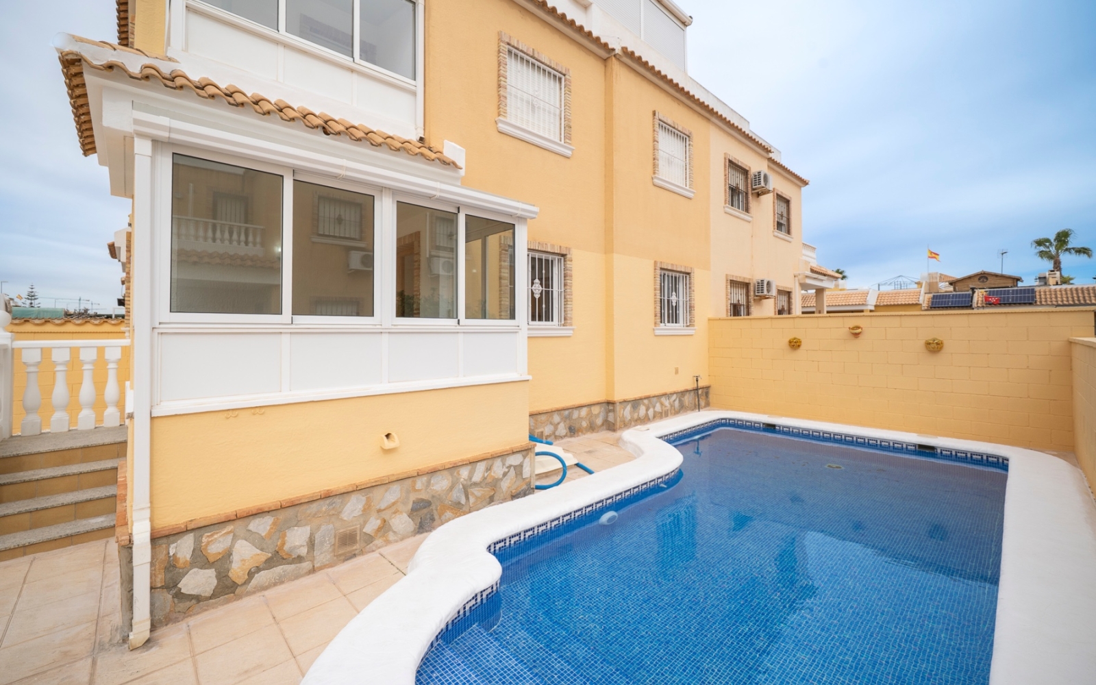 Propriété répartie sur deux niveaux plus solarium, située sur une parcelle privée avec jardin et piscine privée, au sein d’une résidence disposant de deux piscines communautaires à Ciudad Quesada (Rojales).