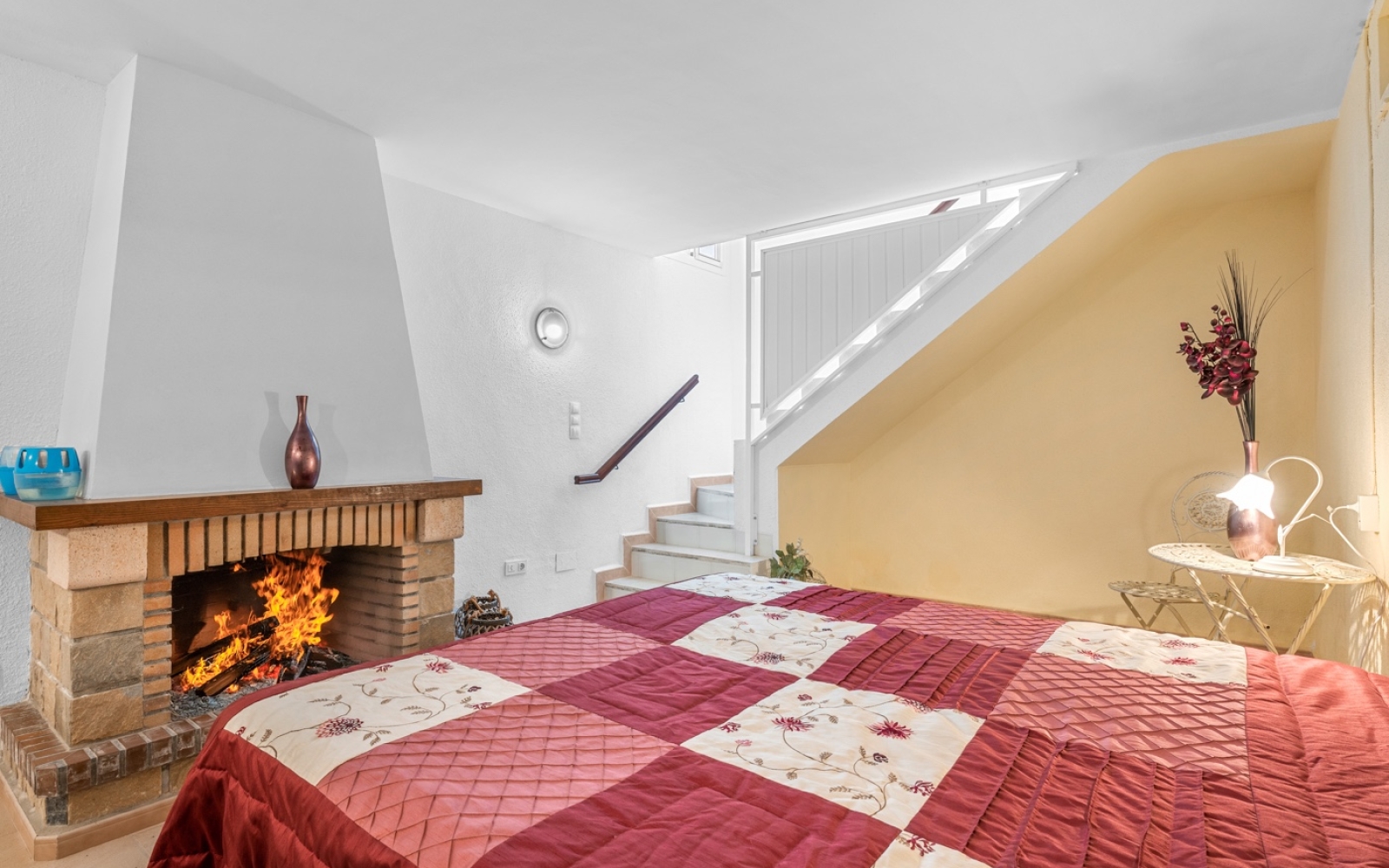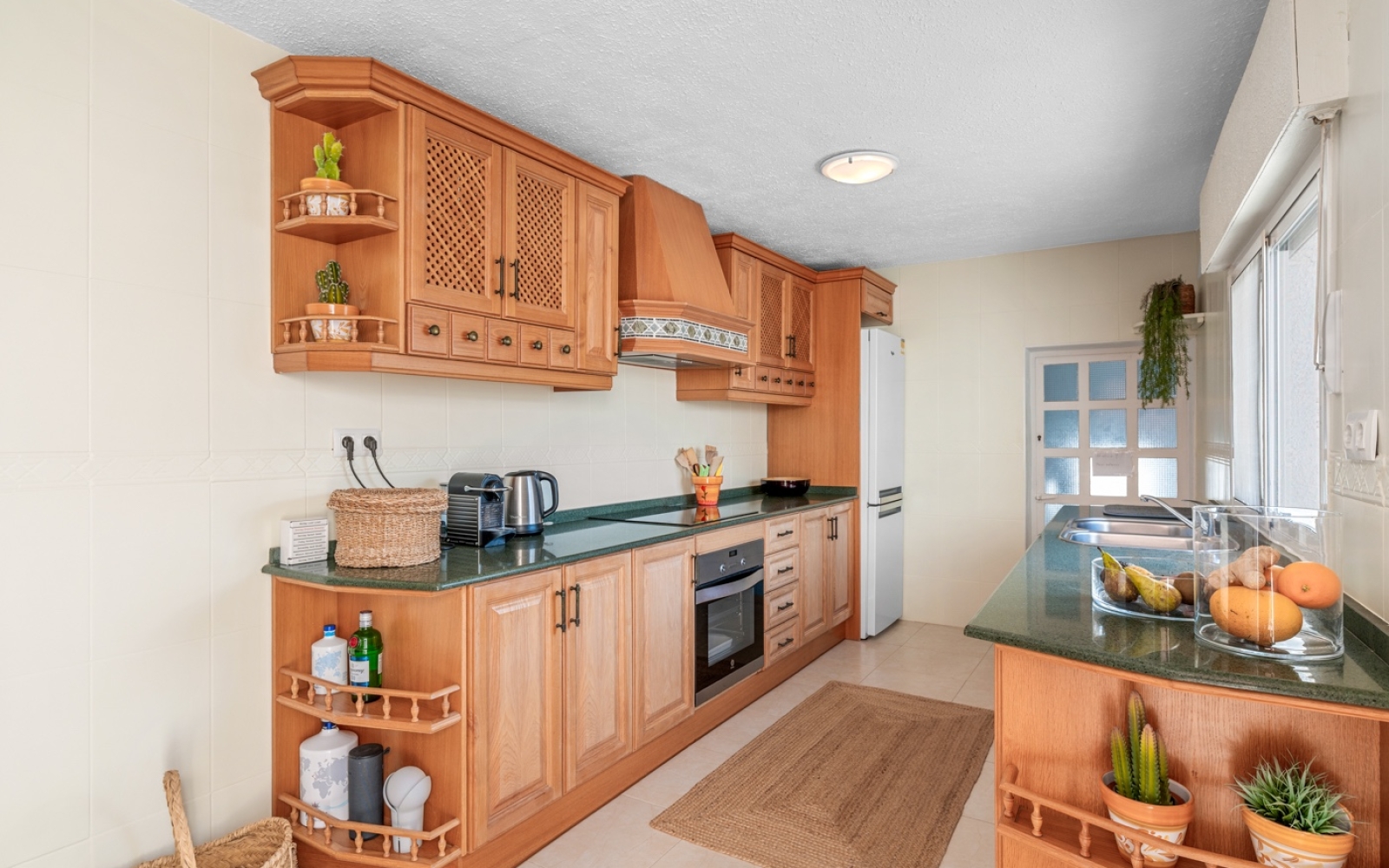 La cuisine indépendante donne directement sur l'arrière de la propriété, où se trouvent une piscine privée, une cuisine d'été et un accès au solarium – idéal pour profiter pleinement du style de vie méditerranéen. Depuis la cuisine, on accède également directement au garage intérieur et à un espace polyvalent situé en dessous. Cet espace peut être aménagé en chambre supplémentaire, en espace de vie ou de divertissement, ou encore en studio/bureau confortable.
