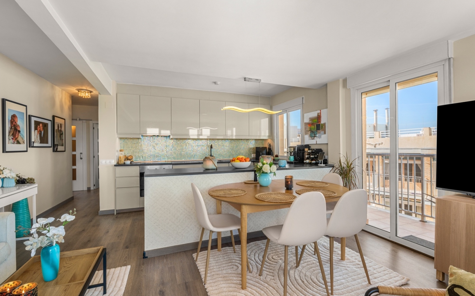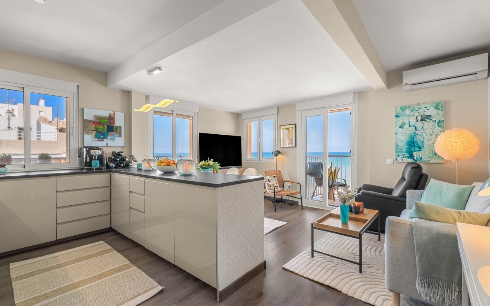 Rêvez-vous de vous réveiller au son des vagues avec la plage à deux pas ? Cet appartement élégant, entièrement rénové, est situé en première ligne à Guardamar, avec la plage et la promenade juste devant.