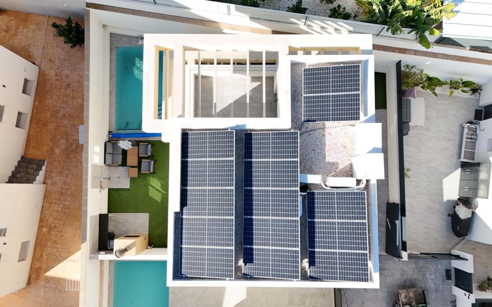 La maison se distingue également par sa haute performance énergétique, grâce à l'installation de 15 panneaux solaires qui réduisent considérablement la consommation d'électricité.