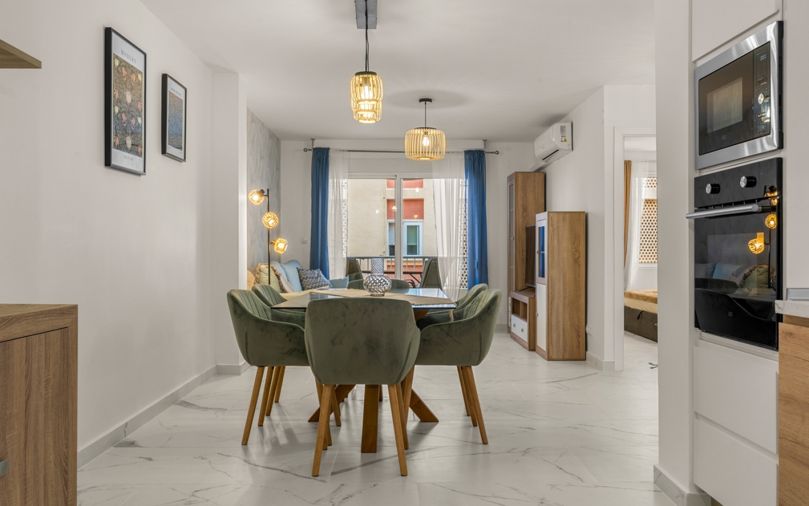 Le séjour/salle à manger s'ouvre harmonieusement sur la cuisine, créant un espace lumineux et aéré, idéal pour recevoir famille et amis.