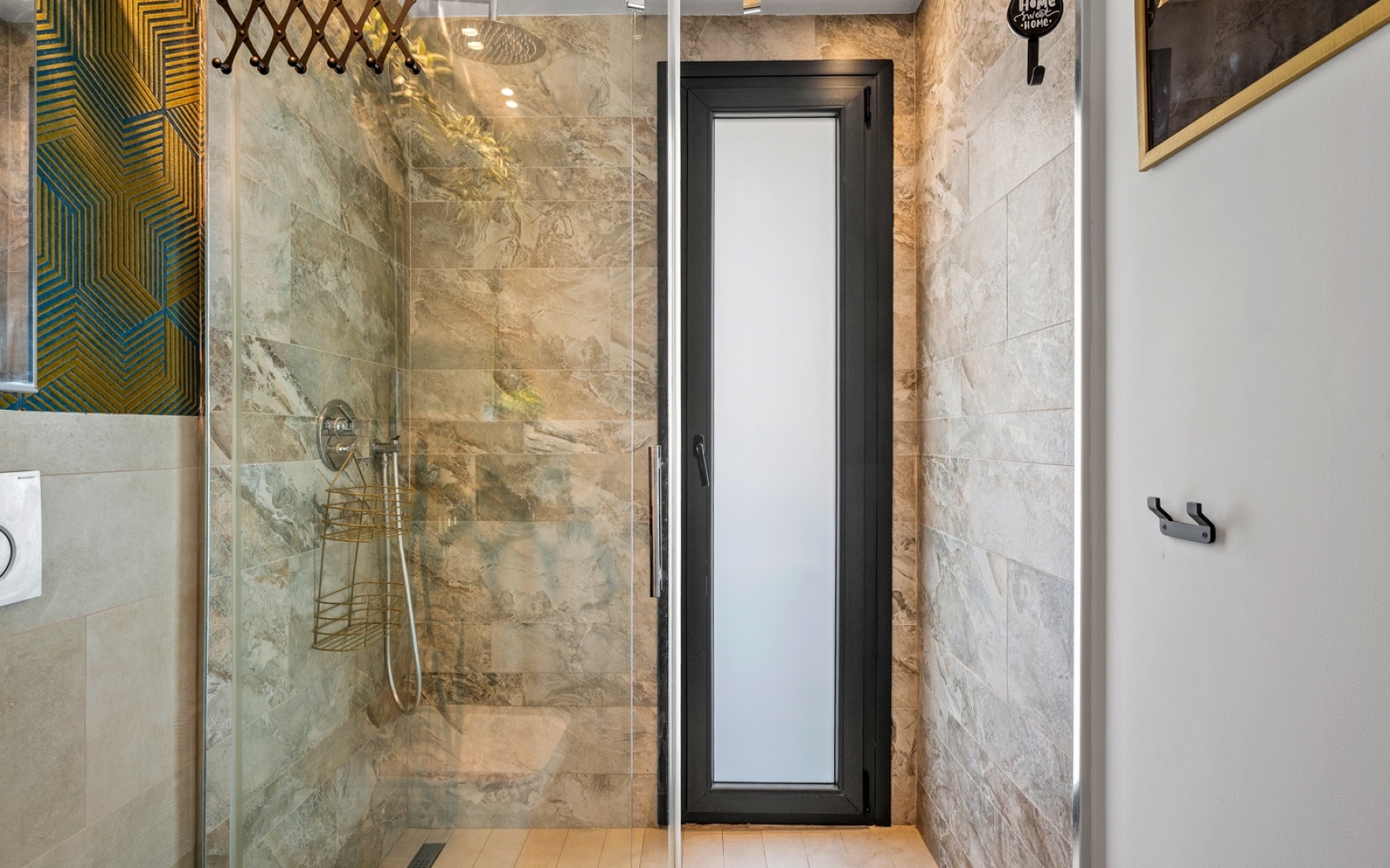 L'appartement comprend trois chambres spacieuses, toutes équipées de placards intégrés. La suite parentale et une autre chambre bénéficient d'un accès direct à leur propre terrasse ou balcon, offrant un espace de détente supplémentaire. Les deux salles de bains, au design moderne et aux tons bruns contemporains, comprennent une salle de bains privative.