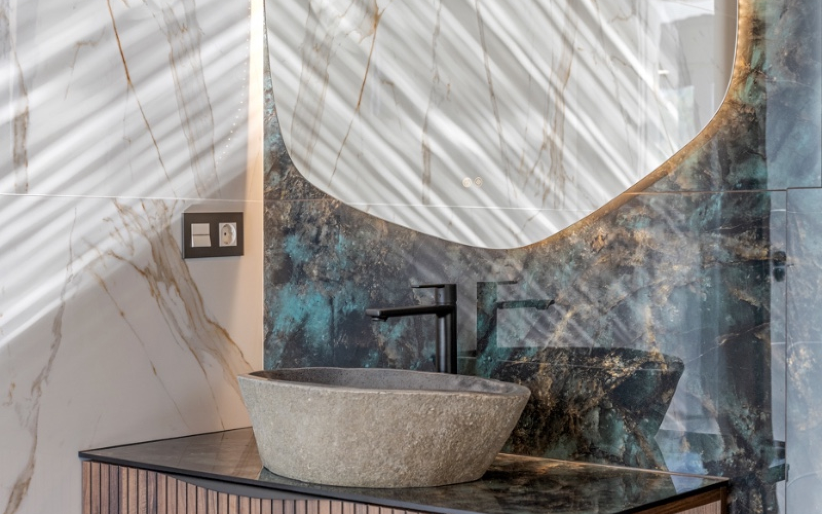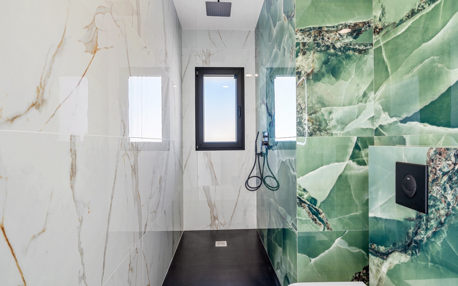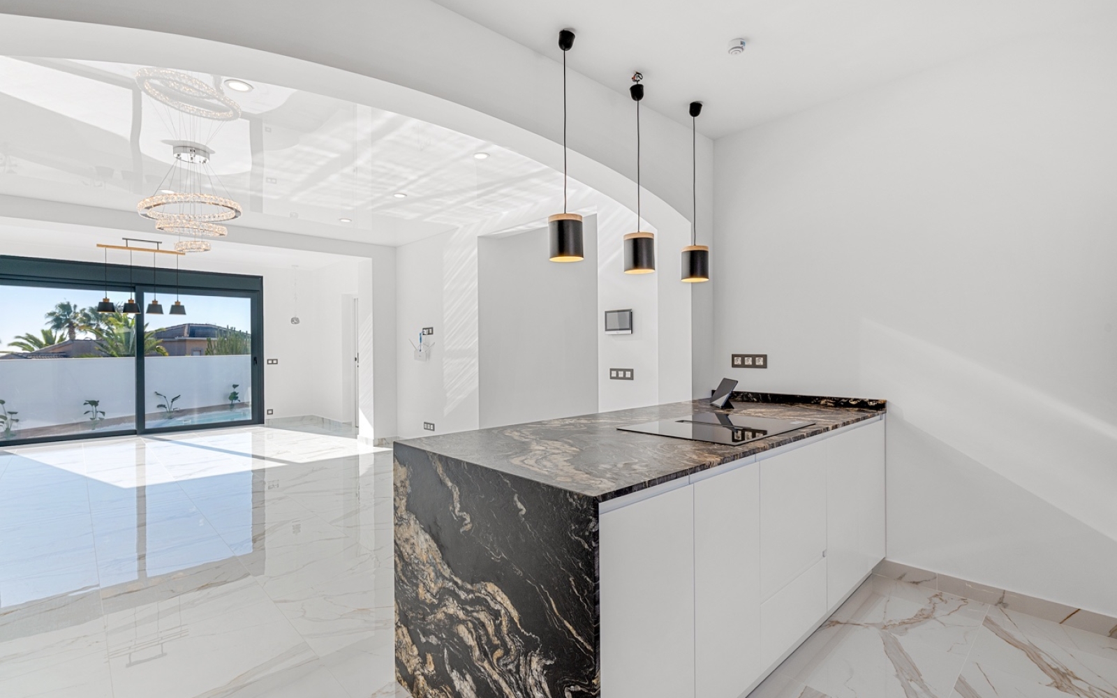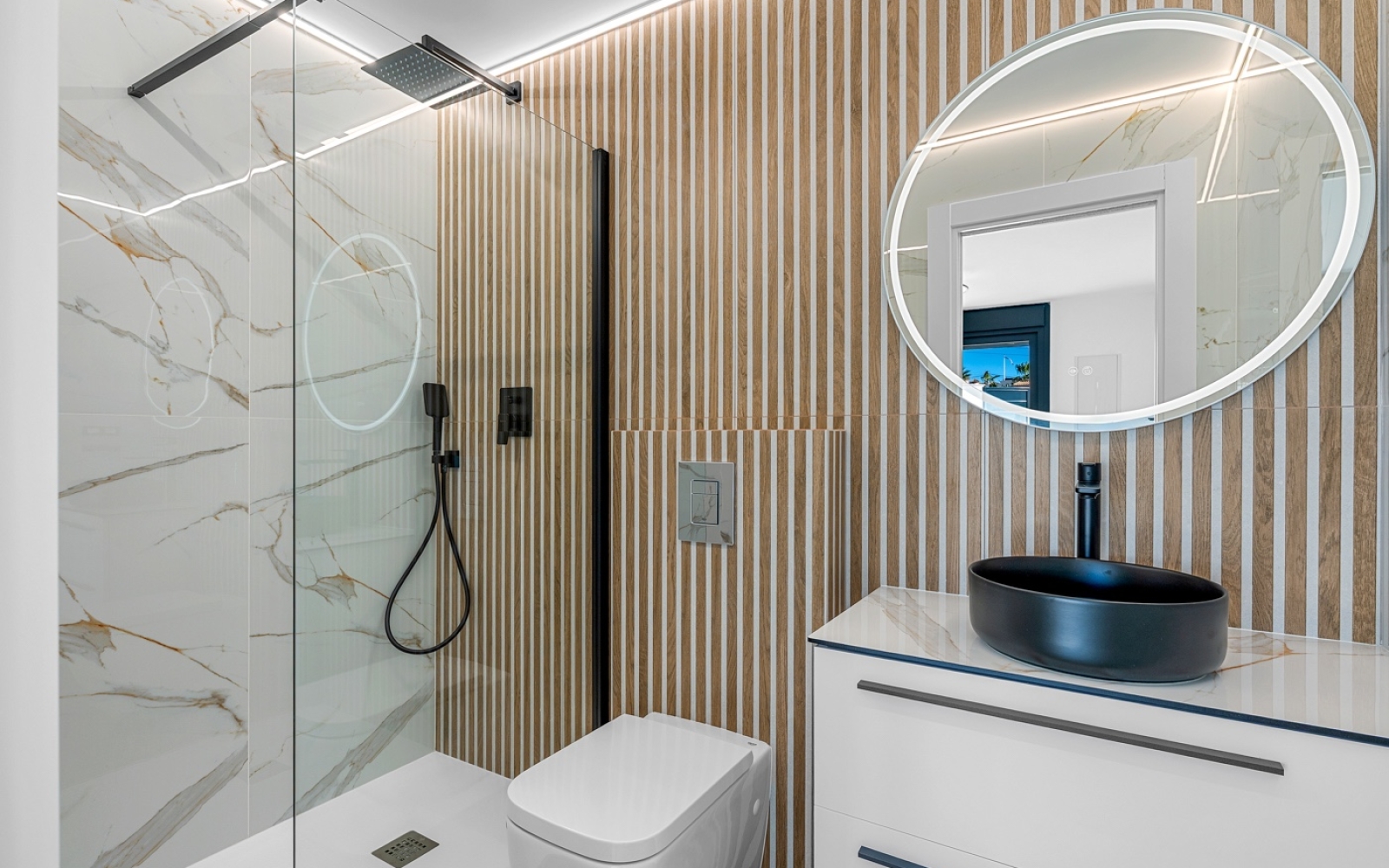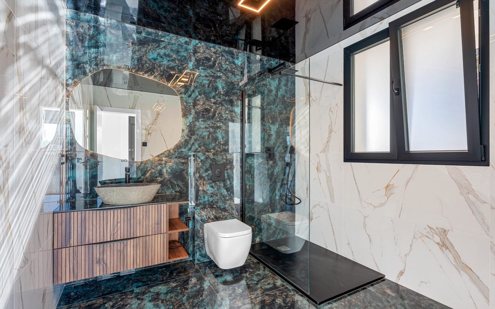 Domotique intégrée et stores électriques pour une expérience connectée. Finitions exclusives : carrelages, matériaux et boiseries design, alliant élégance et fonctionnalité.