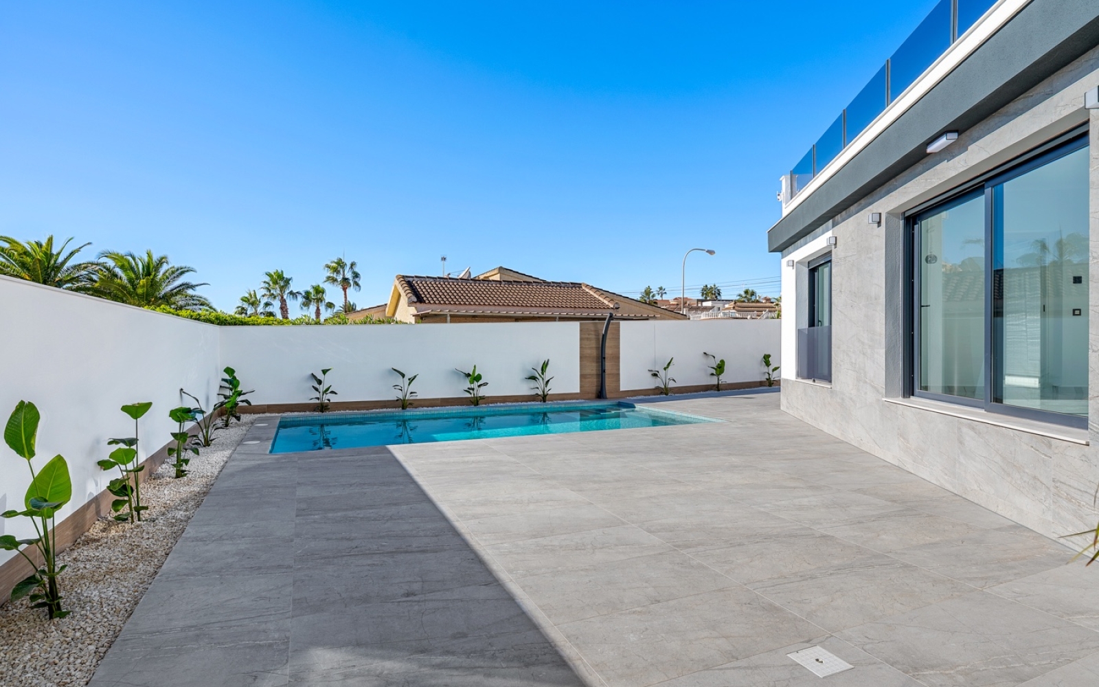 Impressionnante piscine privée de 5 x 10 mètres avec jacuzzi intégré, idéale pour se détendre et profiter du climat exceptionnel de la Costa Blanca.